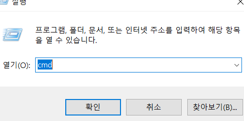윈도우 +r -> cmd 치고 도스모드 들어가서