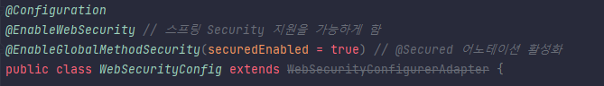 인터페이스 시큐어가 전역의 메소드에 활성화되는 어노테이션을 준다. (@EnableGlobalMethodSecurity)