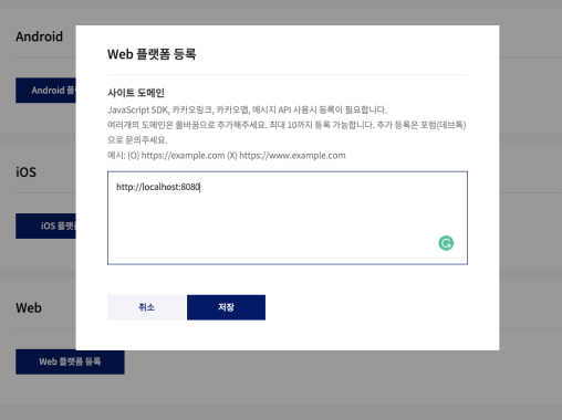 웹플랫폼을 등록한다.
