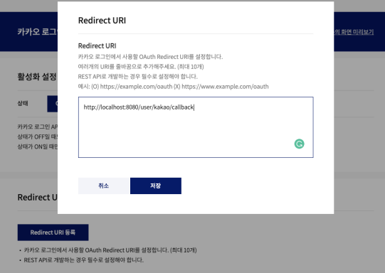 body.add("redirect_uri", "http://localhost:8080/user/kakao/callback");