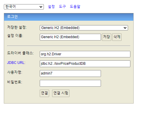 Driver Class 는 org.h2.Driver~!