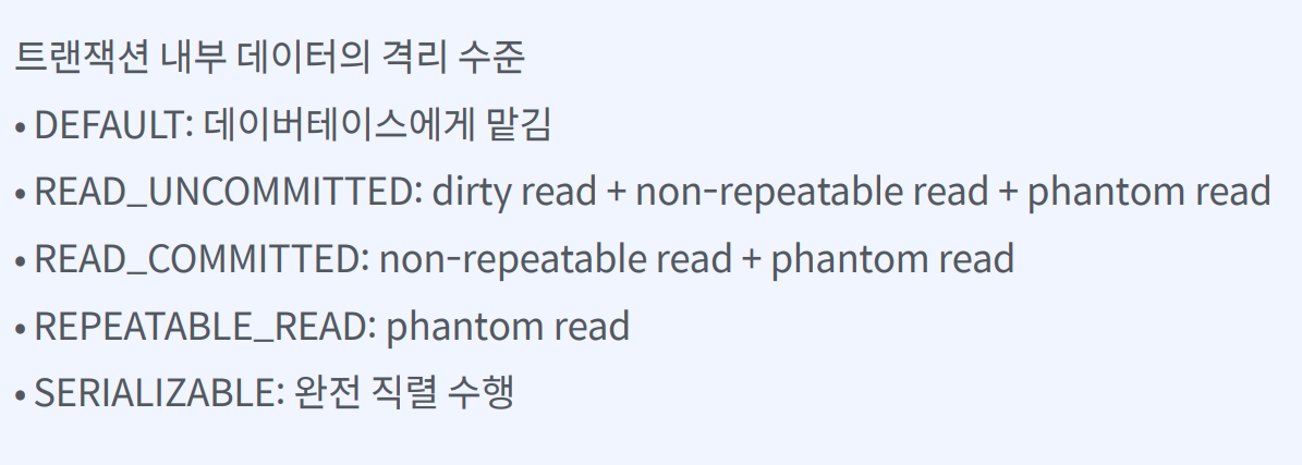 트랜잭션 내부의 격리수준(레벨)설정도 하기와 같이 가능하다.
