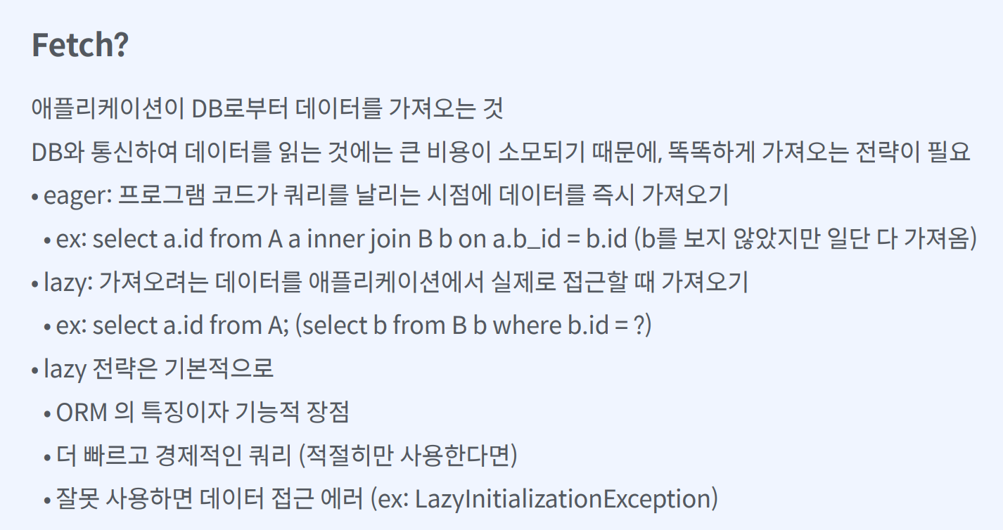 • LAZY 사용: 연관 관계가 있는 엔티티에서 자식 엔티티만 가져오는 시나리오일 때