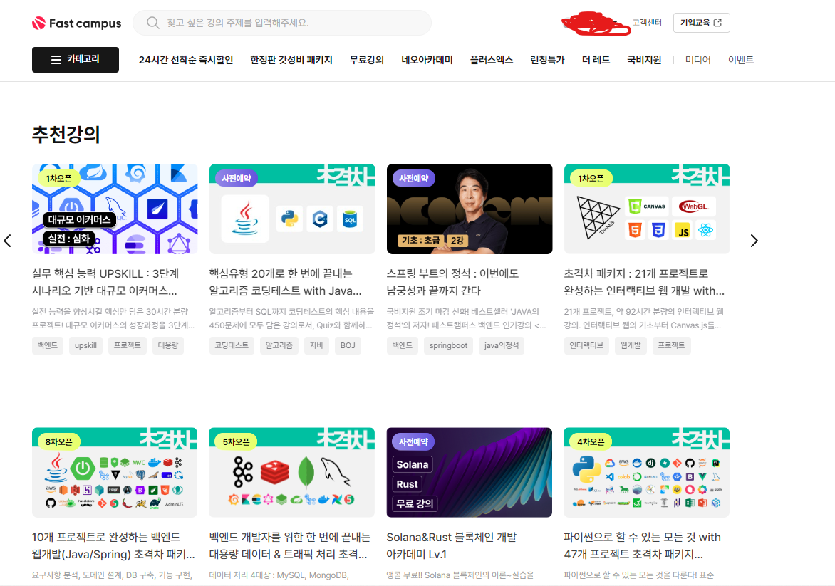 이와 반해서 패스트 캠퍼스를 가보면