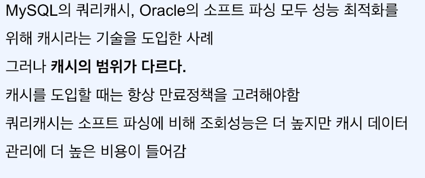 (mysql 쿼리캐시는 조회성능 높으나 캐시데이터 관리에 더 높은 비용)