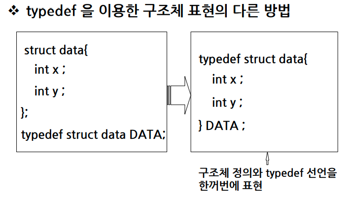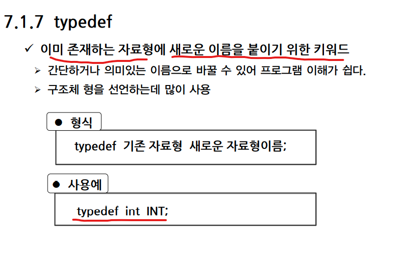 - typedef : 이미 존재하는 자료형에 새로운 이름을 부여하기 위한 키워드