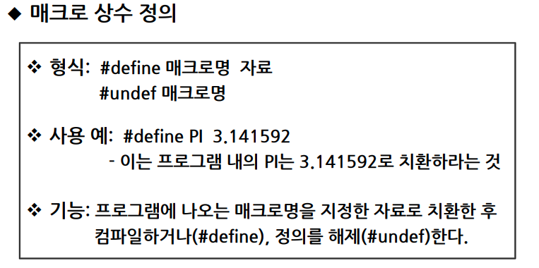 - 선행처리기 : 컴파일하기 전에 미리 수행되어야 할 처리기