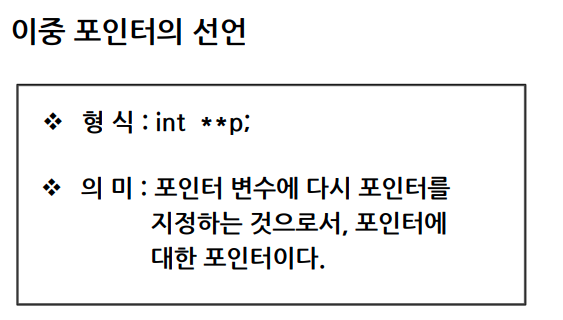 - 이중 포인터 : 자료가 있는 곳을 이중으로 가리키는 포인터