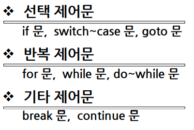 - 선택적 제어 : 주어진 조건에 따라 특정부분으로 수행을 옮기는 분기 제어구조