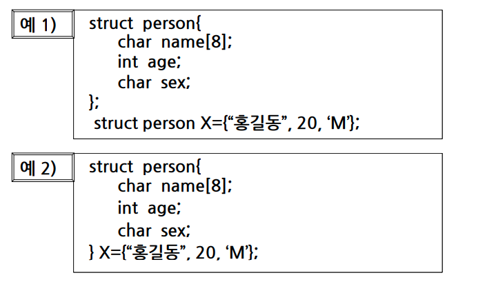 - 구조체 변수 : 정의된 구조체를 다루기 위한 변수