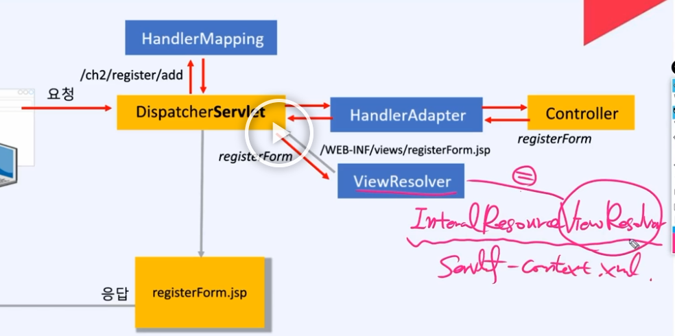 스프링MVC 구조 DispatcherServlet <=> InternalResoureView