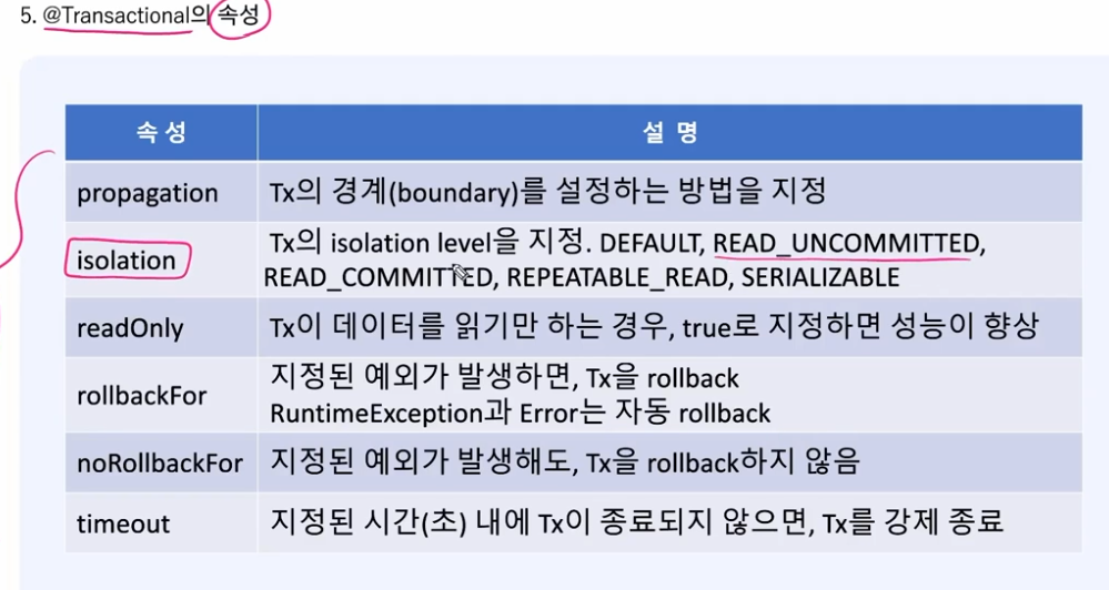 @Transcational 의 속성