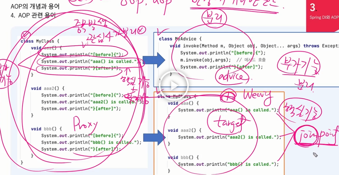 코드를 before 부가 기능, around (핵심기능), after 부가기능