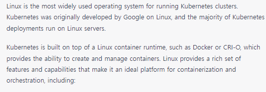 Linux는 Kubernetes 클러스터를 실행하는 데 가장 널리 사용되는 운영 체제입니다. Kubernetes는 원래 Linux에서 Google에 의해 개발되었으며 대부분의 Kubernetes 배포는 Linux 서버에서 실행됩니다.