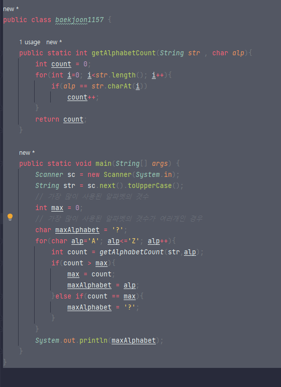 // 각 알파벳 26개 갯수를 각각의 배열에 담음