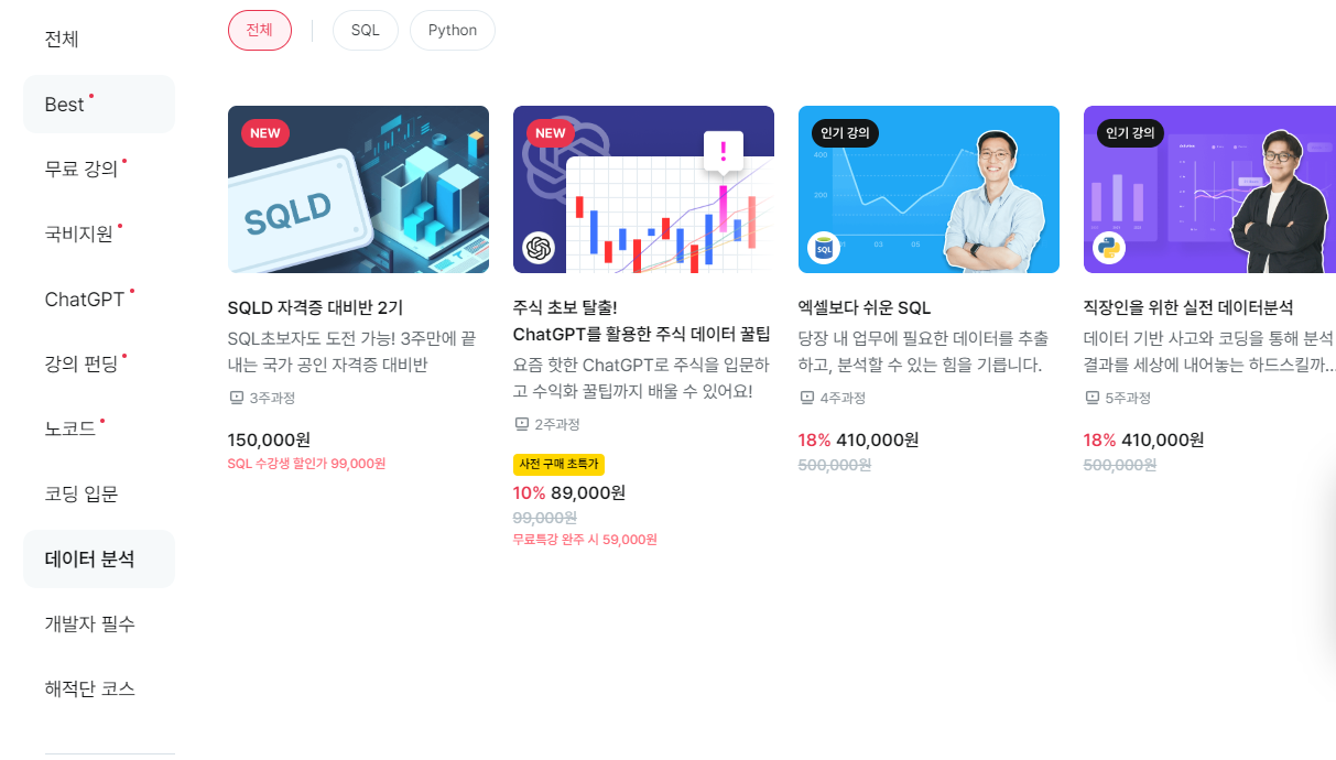 언어도 파이썬 중심에 최근에는 ChatGPT활용 강의를 많이 올리고 있고