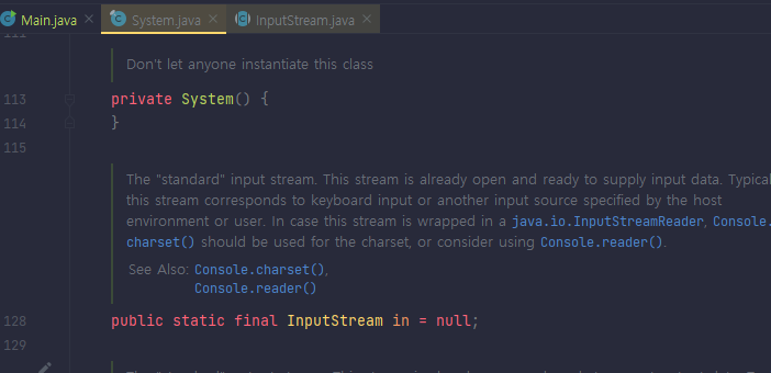 위의 과정에서 InputStream클래스는 System 클래스에 선언된 추상클래스이다.
