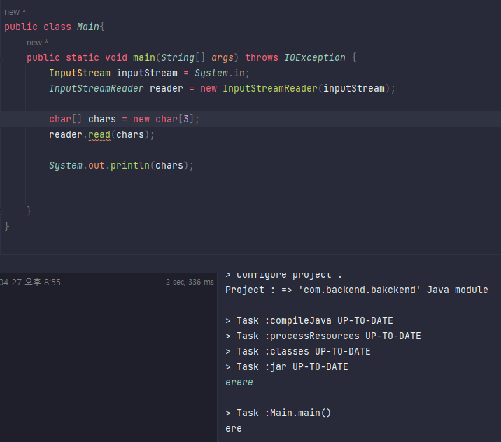 바이트코드를 저장할 수 있는 스트림 데이터를 int로 정의했기 때문에 화면에 abc를 입력해도 a 에 해당하는 아스키코드 97만 출력된다.