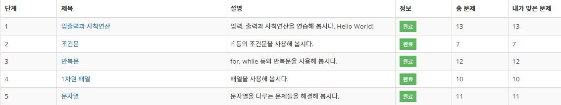 코딩테스트 강의에서 백준의 과제를 내주신 1~5단계까지를 살펴봤습니다.