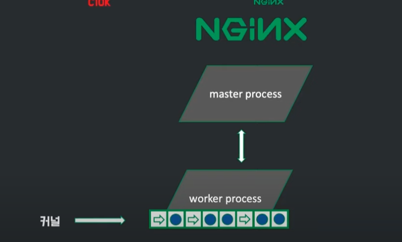 이벤트는 커널이 큐에 담긴상태에서 worker process에서 처리할 때까지 비동기 방식으로 대기