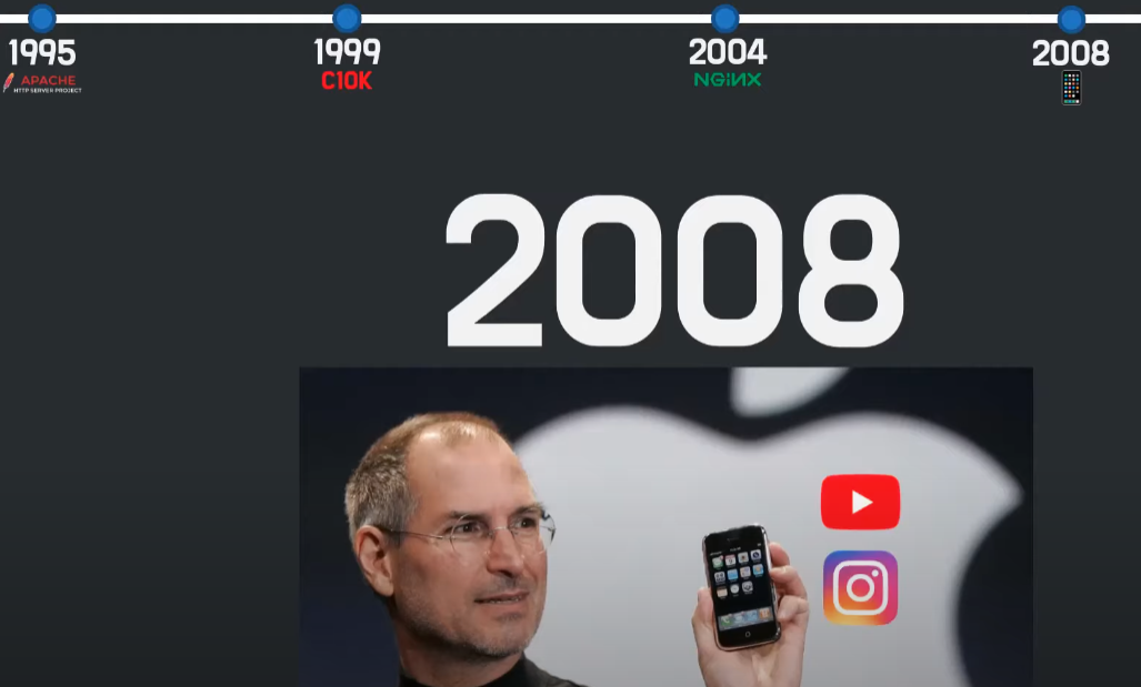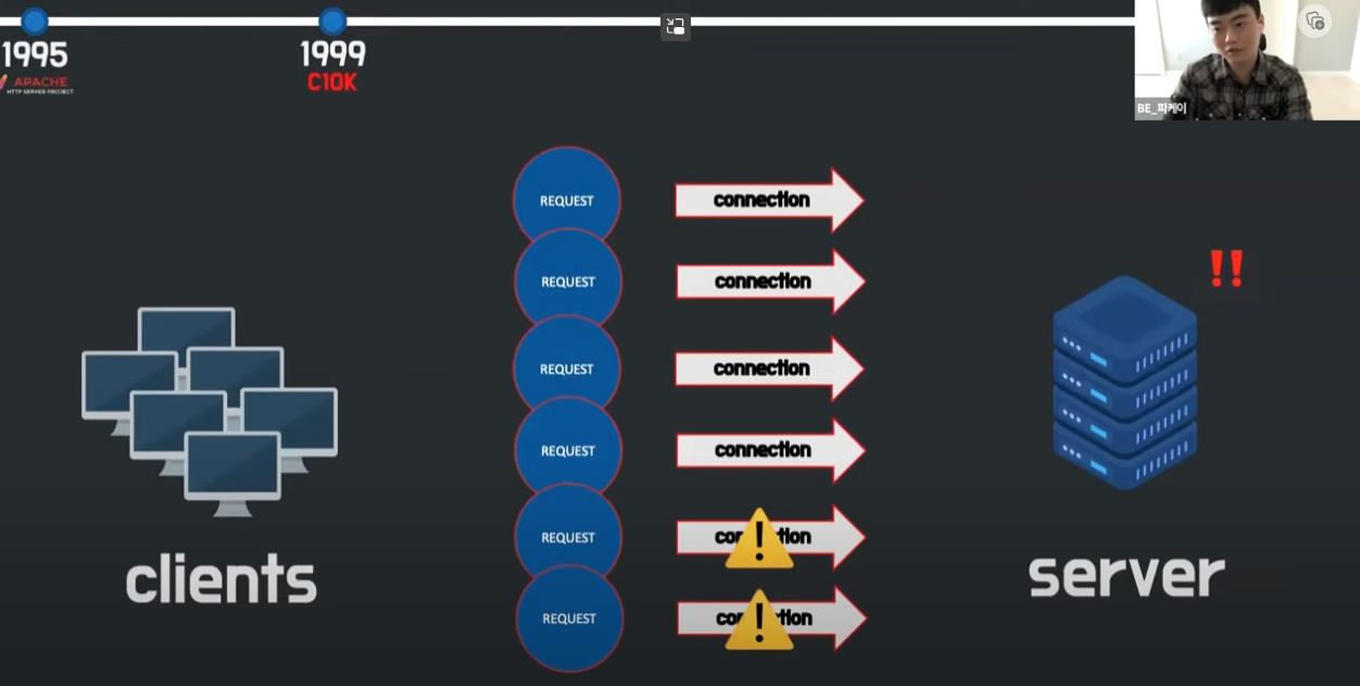 1999년 C10K문제( 동시연결된 커네셕수가 만이 넘어가면 문제가 나타나기 시작)가 발생하는데