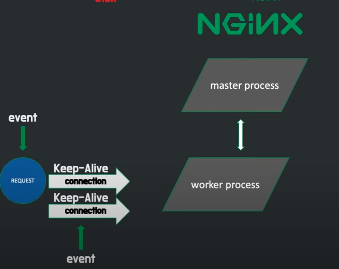 실제로 일하는 녀석은 worker process 로 keep-alive 동안 실행된다.