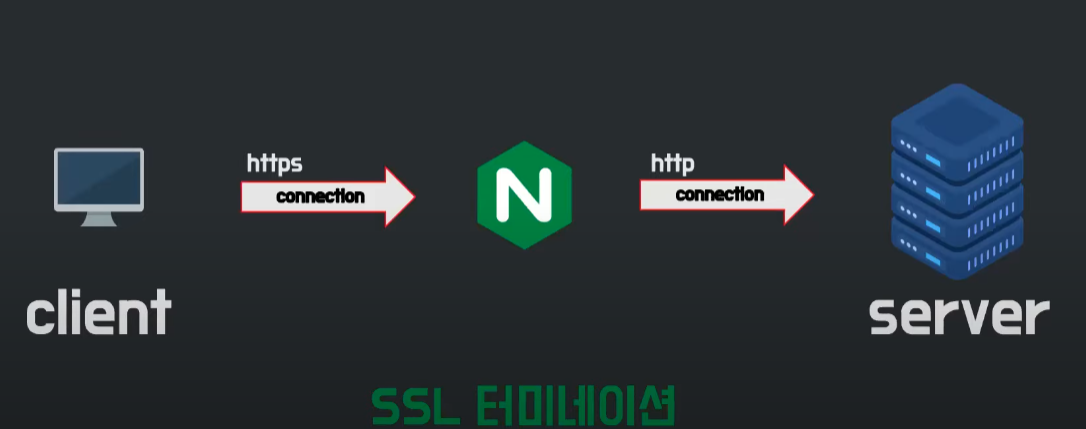 SSL , 캐싱처리도 할수 있어 NGINX가 서버 부하를 줄인다.
