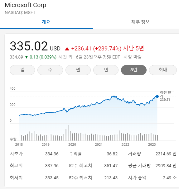 chatGPT의 등장이 거의 100달러의 상승을 불러온 것이다. (약 60프로 상승)