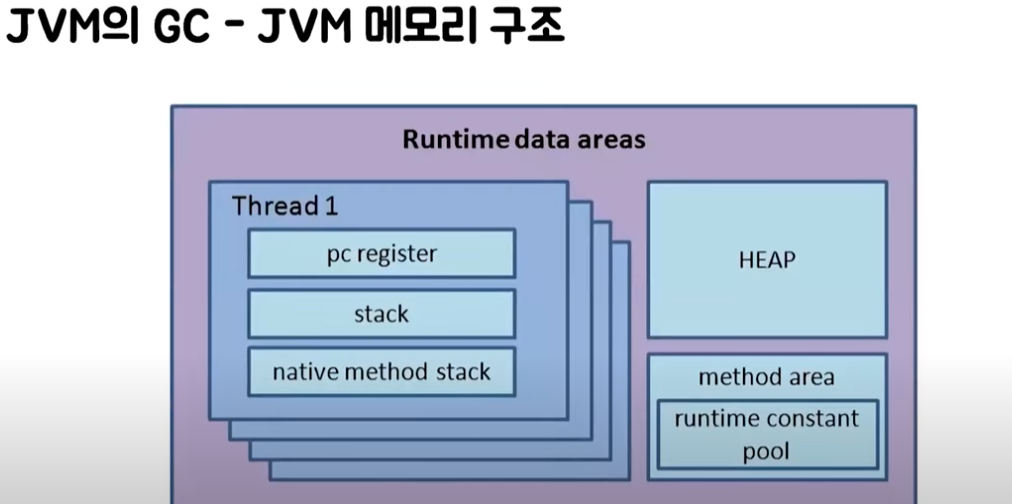 GC는 메모리 관리기법으로 동적으로 할당했던 메모리(Heap영역) 영역 중 필요없게 된 영역을 알아서 해제