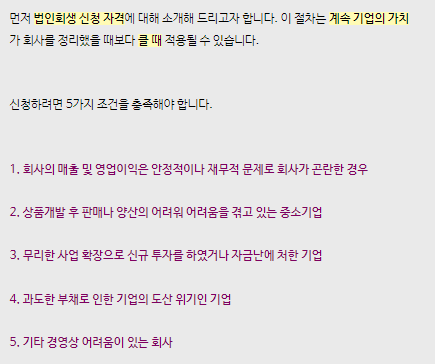 법인(기업) 회생과 법인 파산과의 차이점에 대해 알아보겠습니다. 법인 회생은 사업을 지속하는 것이 청산 하는 것보다 더 이익일 때 선택하게 됩니다. 여기에는 법원에서 '회생가능성'이라는