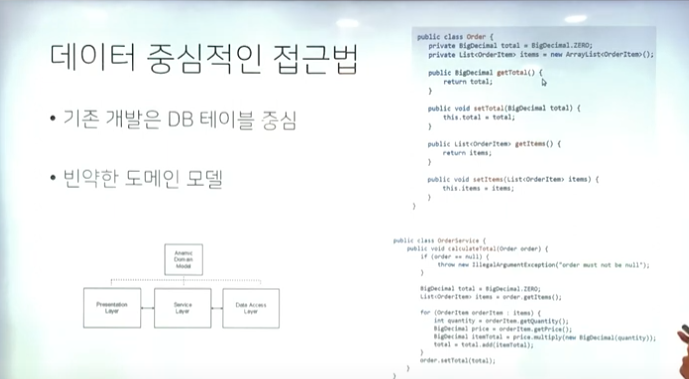 과거 getter , setter 중심의 DB테이블 모델링은