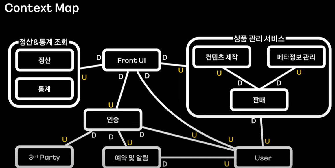 컨텍스트 매핑기술과 이벤트 스토밍 기법으로 Bounded Context를 통합하고 식별한다.