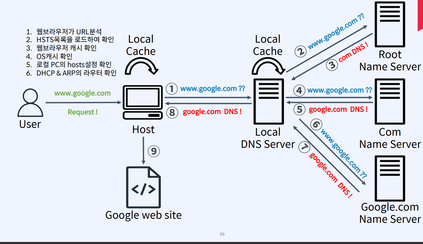도메인 서버를 이리저리 거쳐서 해당 도메인 주소를 가지고