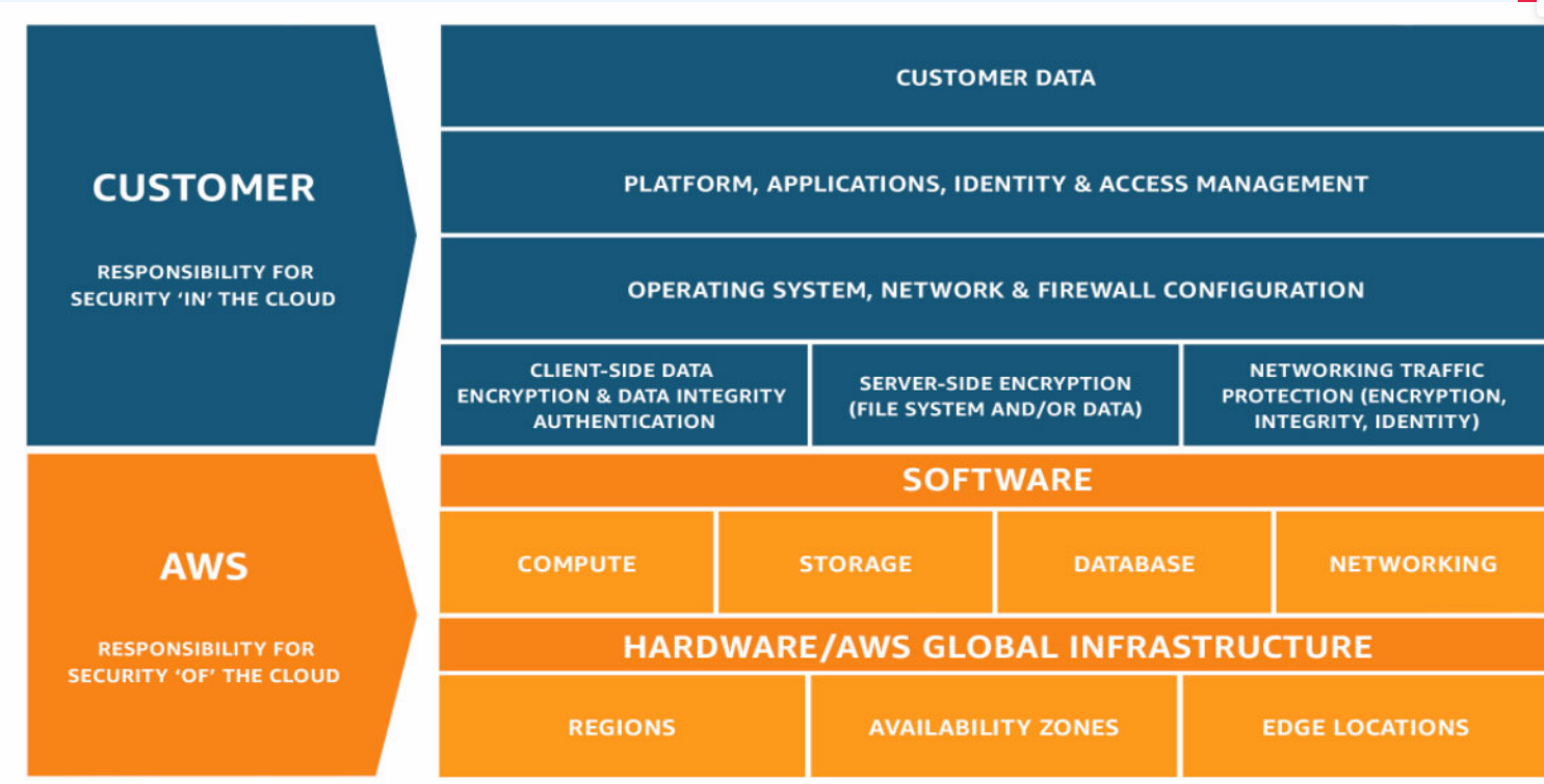 클라우드의 보안은 aws가 책임진다. (software, compute, storage, database, networking, hardware global infrastructure , regions, availability zones, edge locations )