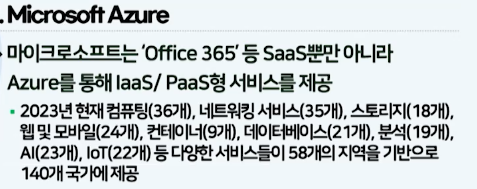 상위3사 aws, azure,gcp가 시장의 70프로를 점유하고 있다고한다.