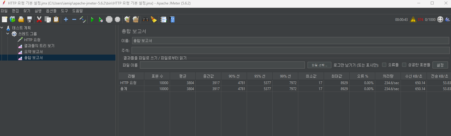 (쓰레드그룹 -> 추가 -> 리스너 -> 총합보고서)