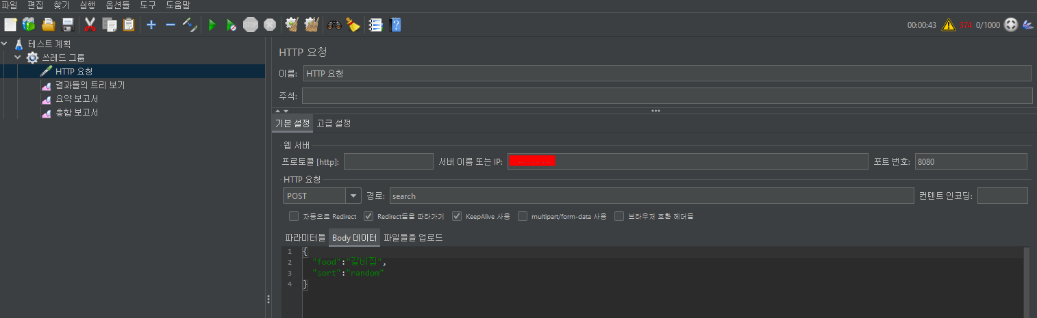 (쓰레드그룹 -> 추가 -> 표본추출기 -> HTTP요청)