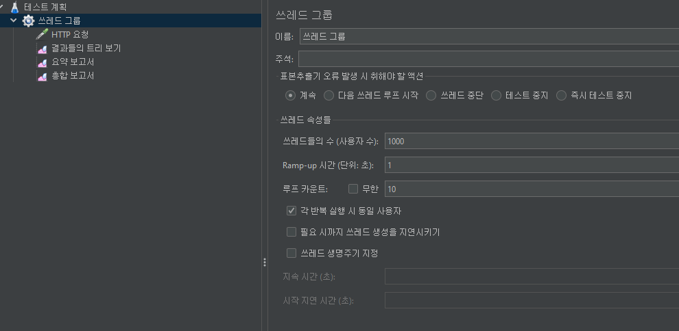 (테스트계획-> 추가 -> 쓰레드들 -> 쓰레드그룹)