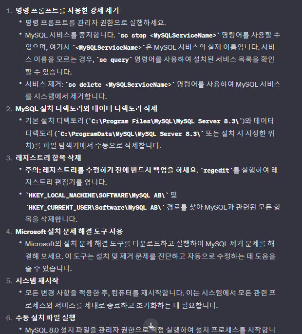 레지스트리 mysql 다지우고 서비스 그고 다시시작해도 안된다...