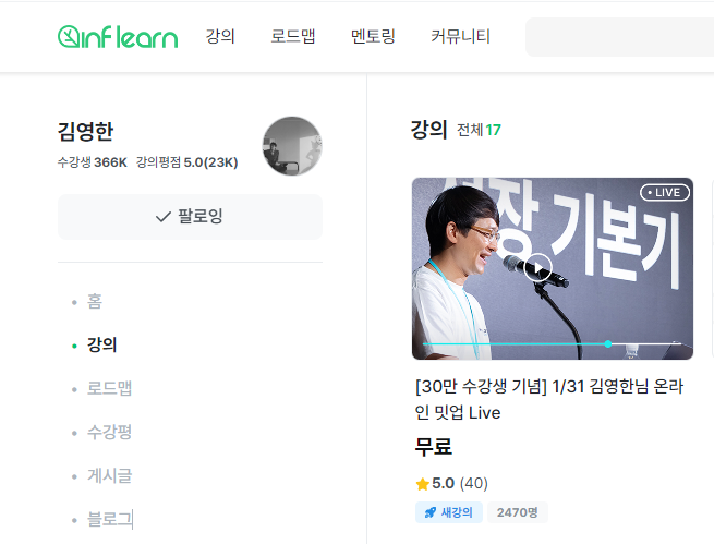 최근에는 퇴사하고 스프링 전업으로 가르치신다고 들었는데요ㅎㅎㅎ