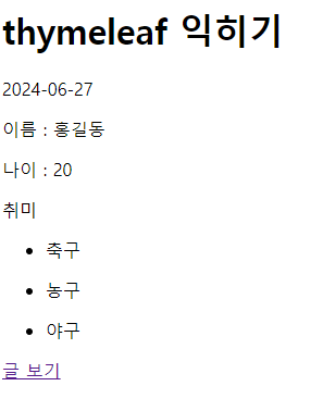 화면까지 가서 대충 타임리프 하나 만들어 놓긴 했는데..