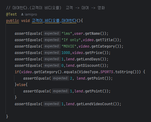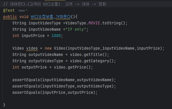 자 세팅 했으니 고객이 비디오를 대여한 것이 제대로 되었나 확인,