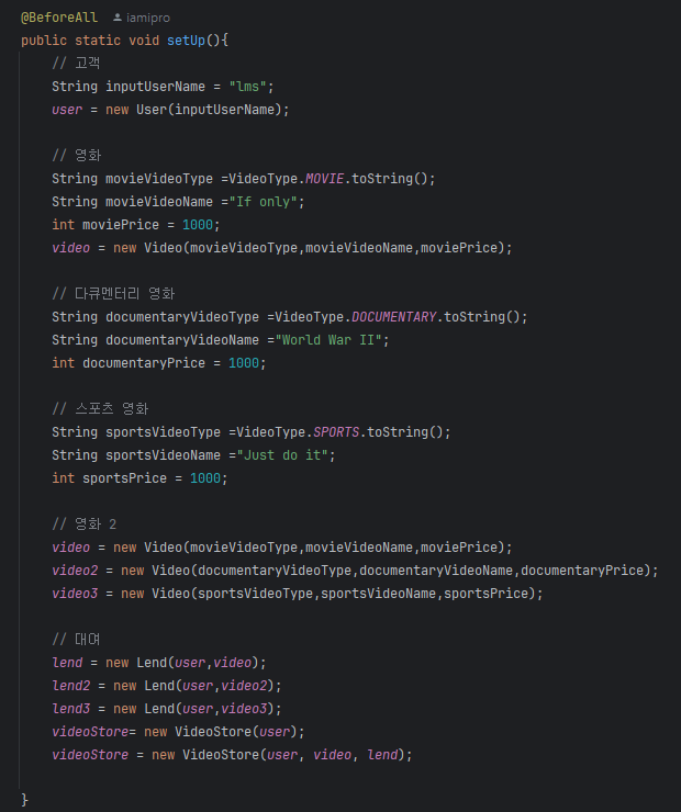 user, video, lend 다 생성하는 메서드 두개를 만들었더니,