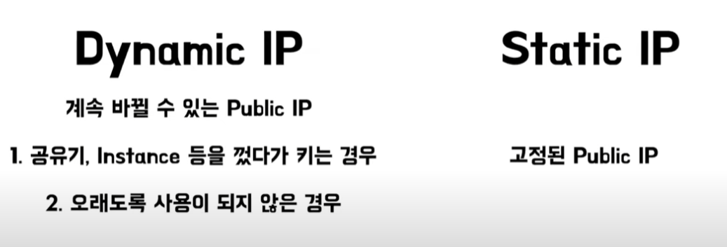 IP가 동적이나 정적인데 보통 동적이다.