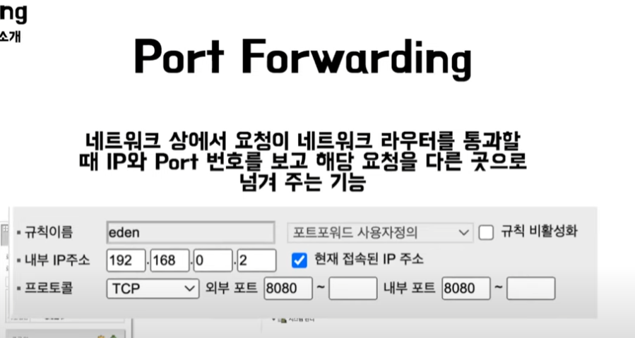 포트 포워딩으로 공유기에 들어온 것을 내부 네트워크로 바로 보낼수 있다.